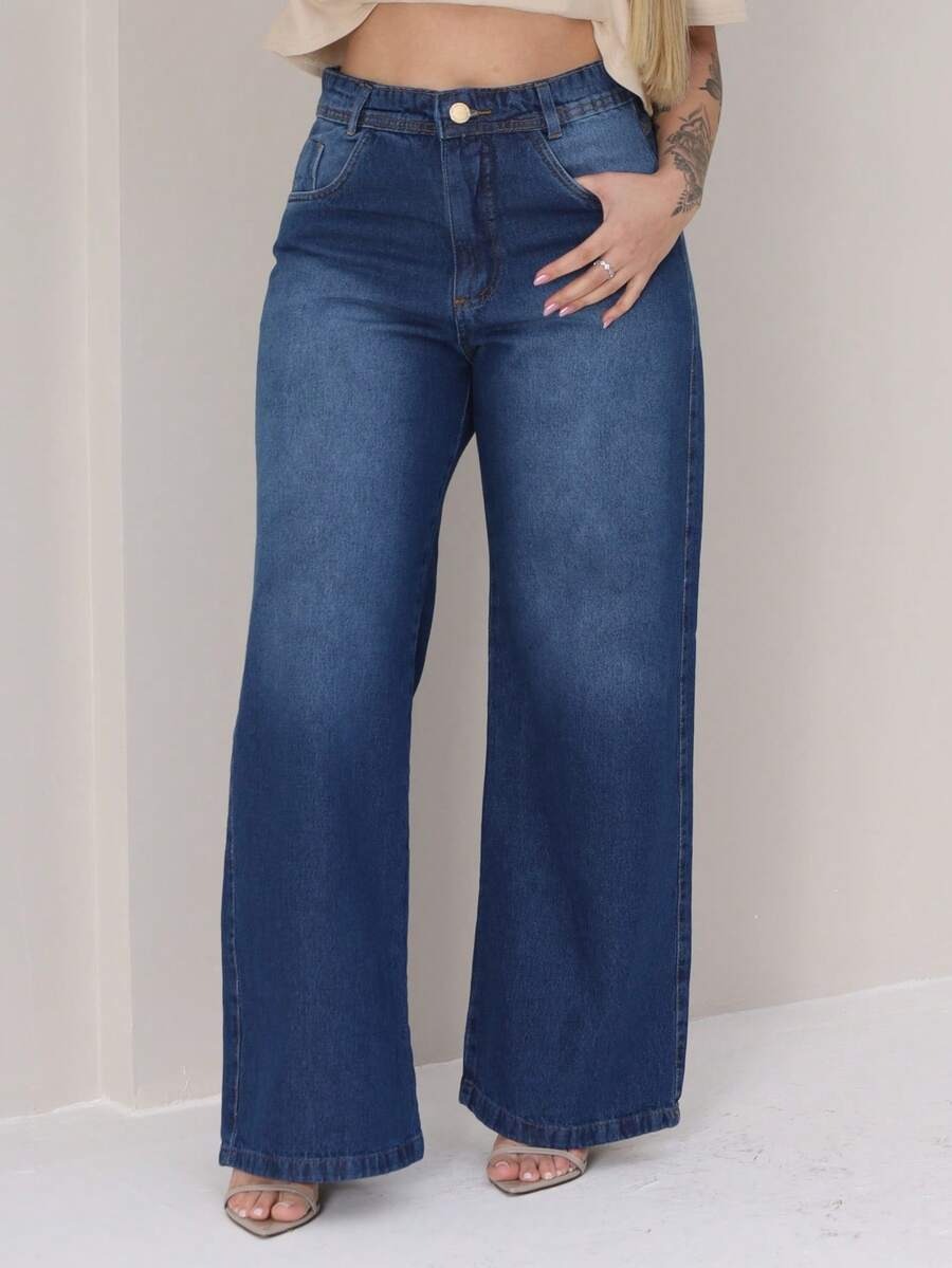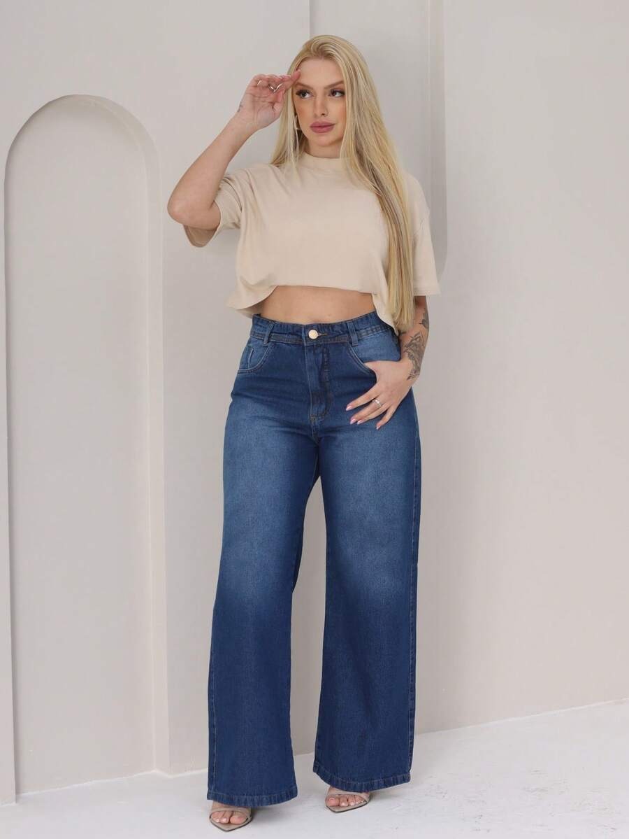 (131) Calça Jeans Wide Leg Feminina Marmorizada Pantalona