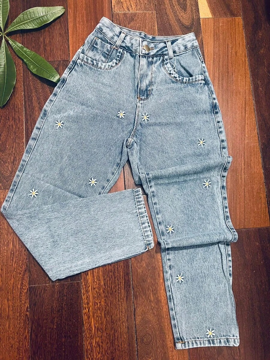(134) Calça moon jeans feminina casual bordad