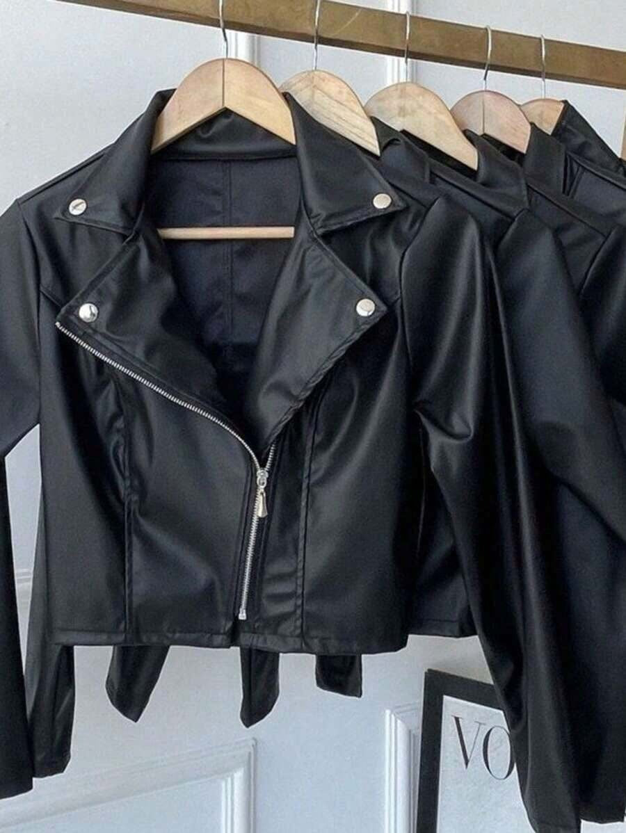 (114) Jaqueta De Couro Feminina Com Ziper Inverno Elegante