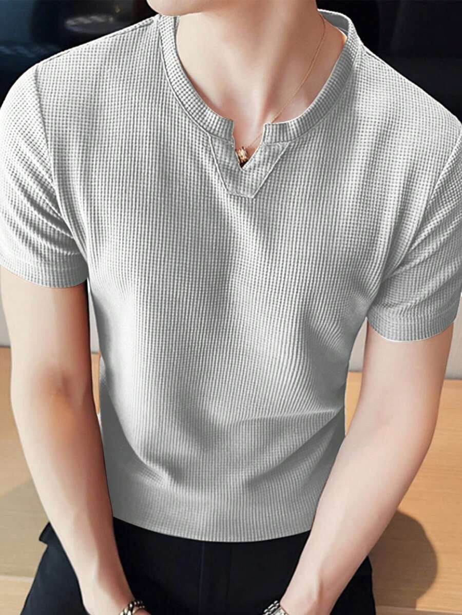 (031) Manfinity Homme Camiseta Masculina Casual de Cor Sólida