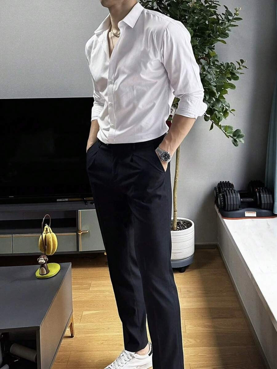(032) Camisa Social Masculina Manga Longa Lisa Com Botão Blusa