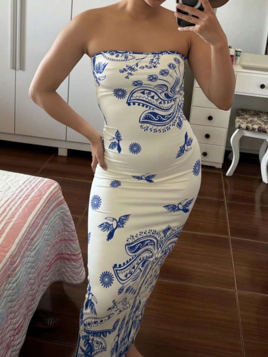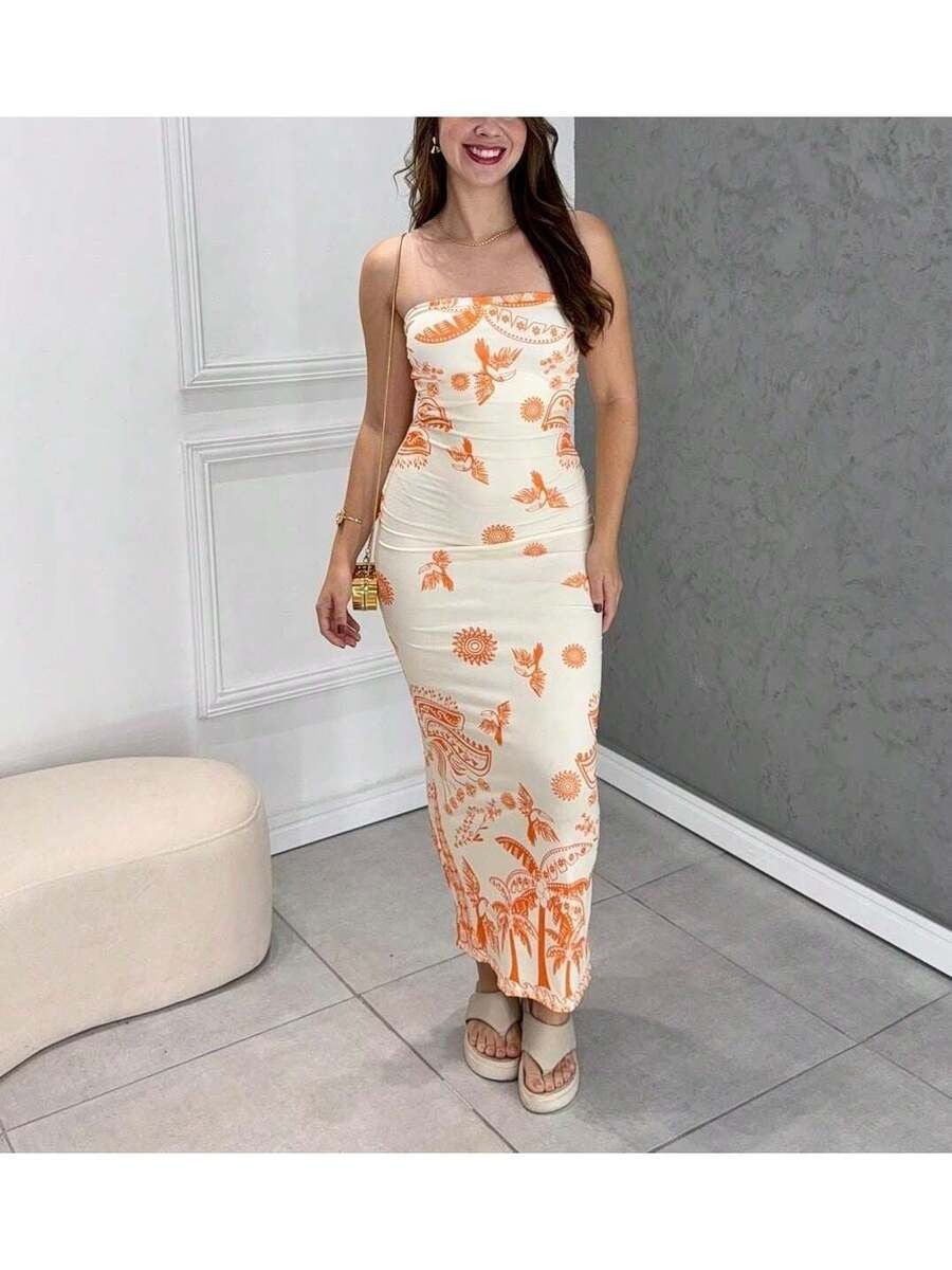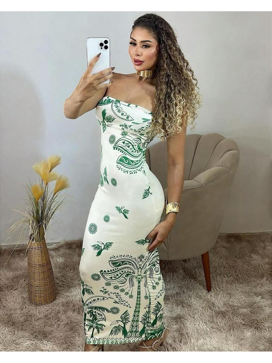(124) Vestido Midi Feminino Tomara Que Caia Verão Tropical